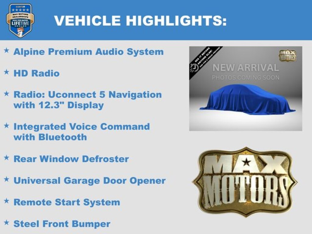 12.3" Touchscreen Display, 4.10 Rear Axle Ratio, Alpine Premium Audio System, Apple CarPlay/Android Auto, Auto High Beam Headlamp Control, Auto-Dimming Rear-View Mirror, Blind Spot and Cross Path Detection, Body Color 3-Piece Hard Top, Body Color Rubicon Highline Flare, Connected Travel and Traffic Services, Convenience Group, Freedom Panel Storage Bag, GPS Navigation, HD Radio, Heated Front Seats, Heated Steering Wheel, Integrated Off-Road Camera, Integrated Voice Command with Bluetooth, MOPAR All-Weather Slush Mats, MOPAR Hardtop Headliner, MOPAR Performance Satin Black Grille, ParkSense Rear Park Assist System, Power Dome Dual Vented Hood, Quick Order Package 24E Shadow Ops, Radio: Uconnect 5 Navigation with 12.3" Display, Rear Sliding Window, Rear Window Defroster, Remote Start System, Safety Group, Shadow Ops Fender Decal, Shadow Ops Package, Shadow Ops Side Bed Decal, Shadow Ops Tailgate Decal, Steel Front Bumper, Steel Power Dome Hood Package, Technology Group, Universal Garage Door Opener, Warn Electric Front Winch.