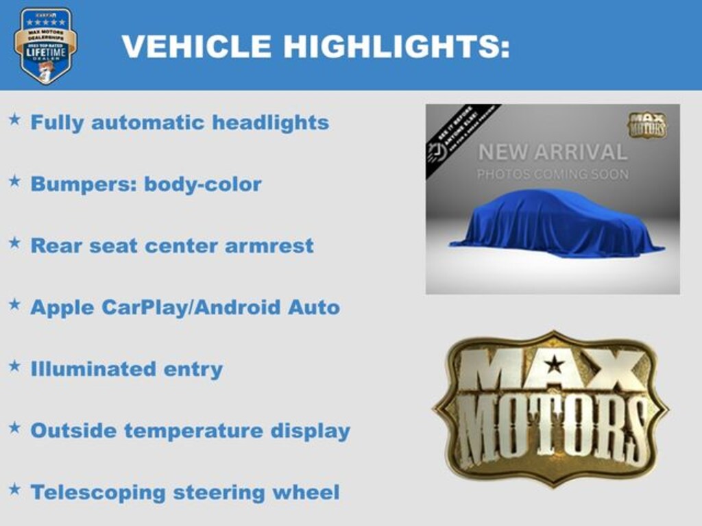 Apple CarPlay/Android Auto, Auto High-beam Headlights, Brake assist, Bumpers: body-color, Delay-off headlights, Electronic Stability Control, Exterior Parking Camera Rear, Fully automatic headlights, Illuminated entry, Outside temperature display, Power steering, Rear seat center armrest, Remote keyless entry, Steering wheel mounted audio controls, Telescoping steering wheel.